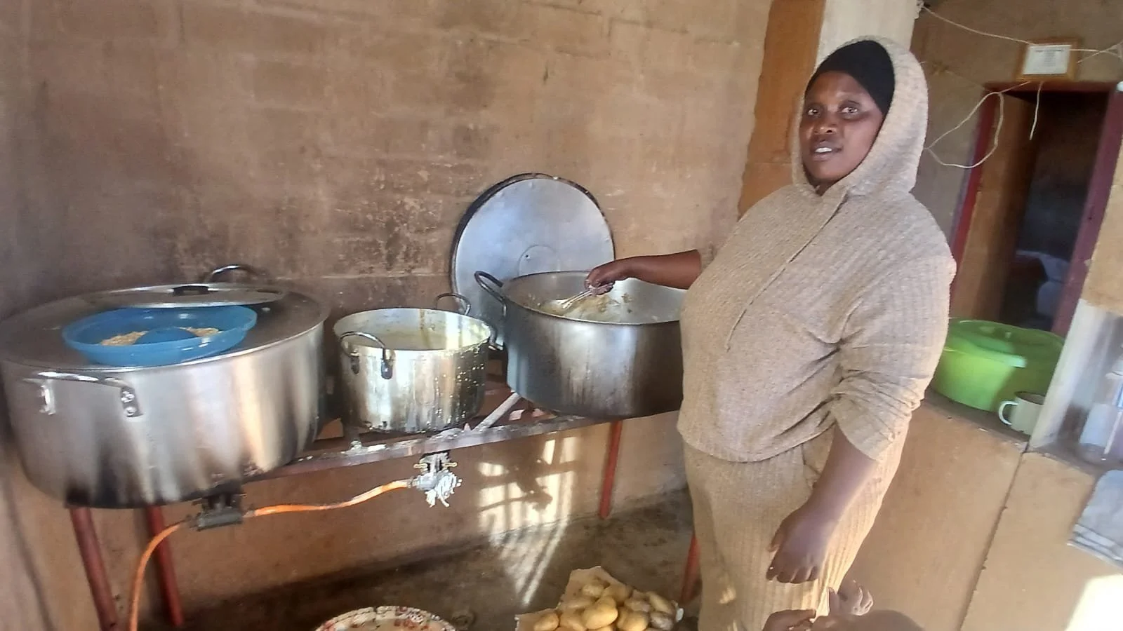 Sometimes, the propane for cooking the food runs out and it takes a few days for the pastor to make a trip to the nearest town, which is 60 miles away. This problem does not stop Tshepiso from preparing the much-needed meal for the children that desperately need it. She simply finds another way – she cooks over an open fire, in the traditional way, outside her house.